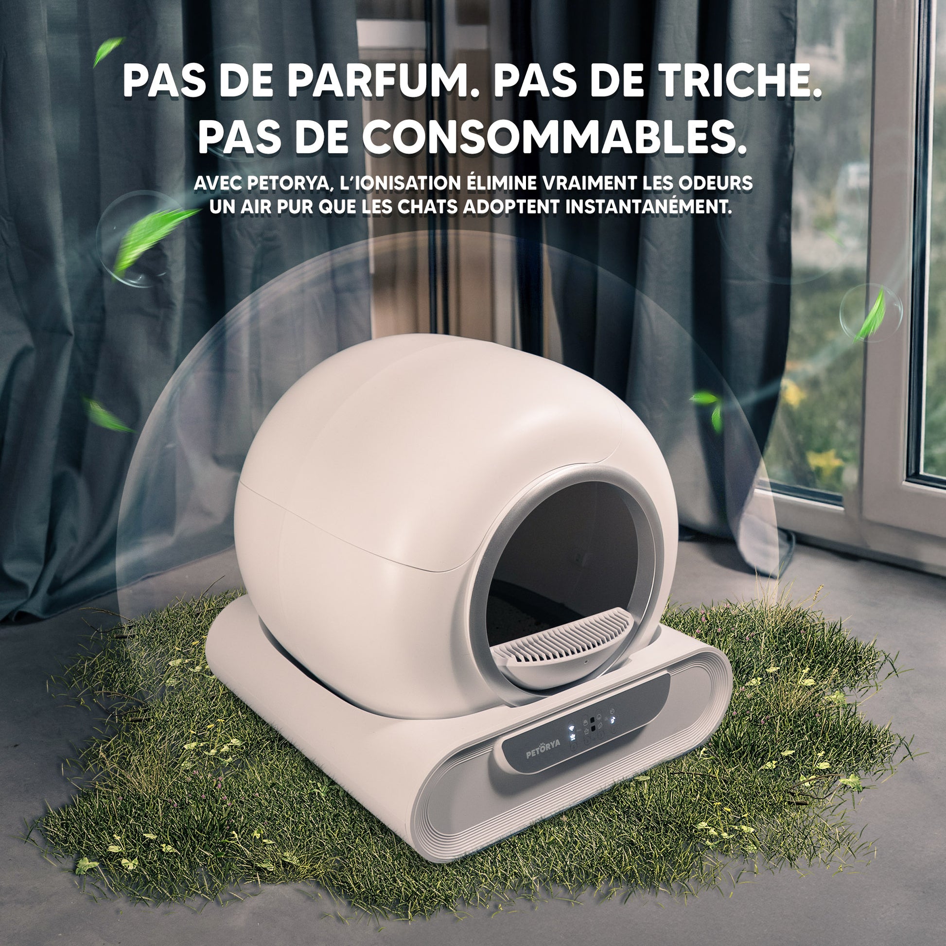 😻 La litière autonettoyante Petorya a été conçue pour offrir un confort maximal à votre chat tout en vous libérant définitivement de la corvée de nettoyage : le tambour lance un cycle quelques minutes après chaque passage, isole les déchets dans un bac scellé de 9L et utilise un système de désodorisation ionique sans filtre ni consommable pour éliminer les odeurs à la source.